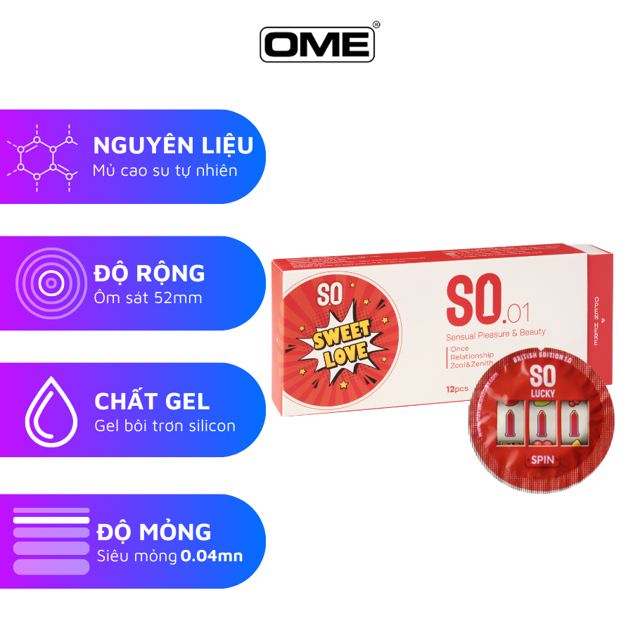 - Bao cao su SO SWEET LOVE SIÊU MỎNG, HƯƠNG DÂU - HỘP 12 với đường kính 52mm, có thêm chất kéo dài, tăng cường thời gian quan hệ, bên trong bcs chứa nhiều gel bôi trơn và tăng độ cứng cáp giúp bạn điều khiển được cuộc yêu như ý muốn.